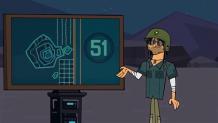 After breaking up with Duncan, Courtney decides to get revenge by flirting with Tyler after being encouraged by Alejandro. The two teams must search Area 51 for intact alien artifacts and bring them back to the Total Drama Jumbo Jet. During the challenge, Duncan and Gwen bump into each other and have their second kiss, thus officially starting a relationship with each other. In the end, Team Amazon wins again and Tyler is voted off due to a mistake that costs his team the challenge.