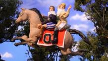 Meet the medieval Dukes of Hazzard. Watch as the Libertarian Party spirals downward one election year after another. Transients are mistaken for Clark Kent as they pick up his clothing when Superman is called. Try the latest Wii Fit game: "Humping Robot". A frog retaliates when a scorpion tries to sting him after promising not to. The Smurfs go to war with the Snorks.