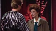 When Anthony saunters into the shop wearing an enormous cowboy hat, he is followed by a breathless Mary Jo, who has obviously been out all night as she is wearing the same clothes she had on when she left the day before. This leaves everyone clamoring for an explanation. It seems their appointment with Sugarbaker's newest client turned into an all-night bash, complete with Cajun buffet and country-western band
