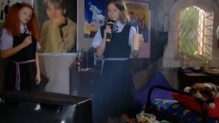 The show starts with Miss Batt bringing the first years back from a field trip where Sybill has gotten chased by a bull and stung by hornets. The first years are hating life under Miss Batt and Miss Drill. The girls, begging to do something quiet are allowed to have cooking lessons. Claris and Sybil make a dancing potion for the students more energy but the teachers get it instead. Claris and Sybil get punished. Sybil tells Claris how she never wanted to be a witch, she wanted to be a computer expert like her father but was made to come to Cackles since all the Hallow girls go to Cackles. She complains how she never gets anything she wants. To cheer her up Claris gets permission to make an everlasting source of light. What she is *really* doing is making a magic lamp for Sybil. Sybil starts wishing for all kinds of things. She won't stop wishing and the power the lamp is using is drawing from the castle itself. It starts pulling the castle apart, breaking dishes, decomposing fo