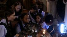 Welcome to the third season, which starts off with Mildred and her friends looking very snazzy and dancing in one of the classrooms. Miss Drill walks in and doesn't stop them (she thinks it's as neat as the rest of us do) but then Miss Hardbroom shows up and tells everybody off.
