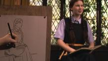 Lynn Lamplighter, an artist who lived in the village near Cackle's, is coming to the school for Art Week, and it's all terribly exciting. Of course, there's one person who's angry about it; Ethel. She comes stomping up the hall with Drusilla and they make some uncalled for remarks to Mildred, who's sitting on the stairs minding her own business. They make fun of Maud too, until Mildred hits Ethel with a blob of green slime. Maud and Mildred run upstairs with Ethel and Drusilla chasing after them.