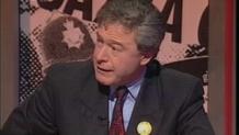 Angus Deayton hosts the news quiz, with team captains Paul Merton and Ian Hislop and guest panellists Germaine Greer and Tony Banks.