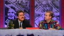 Actress Kathy Burke and journalist Martin Young join Ian Hislop, Paul Merton and host Angus Deayton.