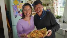 Molly Yeh's coolest cousins are in town, so she's making a Chinese dinner to celebrate! She prepares her mouthwatering Char Siu Meatball Sliders, lucky Long Noodle Pasta Salad coated in a mayo-y Chili Crisp sauce, perfectly salty Soy Sauce Deviled Eggs, and a moist Toasted Sesame Layer Cake for dessert.