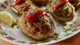 Molly Yeh makes her favorite Middle Eastern dishes with a Midwestern touch. She prepares her fried Squash Falafel with a spicy Chipotle Ranch drizzled on top, super hearty and Meaty Twice Baked Potatoes with spicy harissa ketchup and her take on Basbousa, a nutty and sweet semolina cake cloaked in tart Cherry Compote for dessert. Plus, she has delicious Date Cream Soda Floats to sip and spoon on the side.