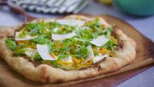 It's Pizza Friday on the farm, and Molly Yeh and her husband, Nick, are hosting friends for dinner. Molly's making two pizzas using the same delicious dough recipe: Sausage and Kale Pizza and Squash and Ricotta Pizza with fresh squash from the farm. She also makes a Pizza Parlor Salad with Chickpeas to get some greens in, and for dessert, she serves her easy Chocolate Chip Cookie Cake with Buttercream Frosting.