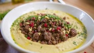 Molly Yeh's sister-in-law, Anna, is visiting the farm with her new baby Cliff, and she's asked Auntie Molly to make her favorite healthy meal. Molly gets to work making Hummus with Meat All Over It, homemade Whole Wheat Pita, Pita Salad with Tahini Dressing and, for dessert, Mint Cupcakes with Cream Cheese Frosting.