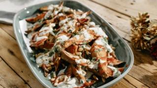 Molly Yeh is whipping up fun takes on Thanksgiving classics for her Friendsgiving gathering on the farm. Her main dish is sweet and savory Pomegranate Glazed Turkey Legs, and she serves them with Slow Cooker Greens and Dumplings as well as Roasted Sweet Potato Wedges with Cilantro Yogurt. For a festive dessert, Molly bakes her super-moist Cranberry Stuffed Cupcakes with Cranberry Cream Cheese Frosting.