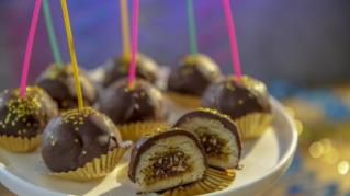 One of Molly Yeh's best friends is in town for their birthdays, so Molly is making her most-delicious party bites for the double celebration. She starts with her pretty in pink Pickled Beet Deviled Eggs and addictive Spinach and Feta Rugelach. She fries up crispy Walleye Cakes and assembles a Party Platter with Pickle Dip. For a dessert that's worthy of two celebrations, Molly makes chocolatey Mozart Birthday Balls.