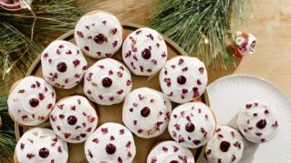 Molly Yeh is celebrating Chrismukkah on the farm with tons of delicious food, treats and family traditions. She makes Pistachio Linzer Christmas Cookies with Tahini Hot Chocolate to keep everyone warm and happy. Before heading to the annual HollyDazzle Festival, there's a feast for the whole family with all of the best Hanukkah and Christmas dishes on one table, including Molly's juicy Roasted Spiced Chicken and Apples, Brussels Sprouts Salad with Cranberries and Dijon Dressing, crispy fried Potato Latkes with Caramelized Onion Sour Cream and Raspberry Rose Filled Donuts for dessert.