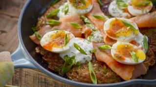 Molly celebrates day two of Passover on the farm with her giant skillet latke for lunch, succulent spatchcock roast chicken with schmaltzy potatoes and green goddess sauce for dinner and pomegranate pavlova for dessert.