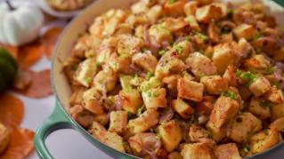 It's the most legendary food holiday ever -- Thanksgiving! -- so Molly Yeh is celebrating with tons of food and a tiny parade on the farm. She makes crispy Fried Turkey Breasts with Cranberry Mayo, Everything Bagel Stuffing, twice-baked Tahini Cinnamon Sweet Potatoes with Toasted Meringue and, for dessert, her melt-in-your-mouth Pistachio Pudding Pie.