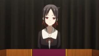 The fateful day of the student council elections finally arrives, but Miko’s efforts are in vain, and it appears that Shirogane’s past experience as the president has given him the edge to be the projected winner. Kaguya gives a perfect endorsement speech showing that Shirogane and his team are leagues above Miko’s camp. However, for some reason Ishigami looks troubled. He is worried that Miko, who suffers from stage fright, will be unable to deliver her speech, and become the laughing-stock of the whole school. As Ishigami is visibly frustrated by this prospect, Shirogane utters “I just need to win in a way so that Miko Iino won’t be ridiculed by the other students, right?” as he heads for the stage…