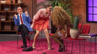 The queens' improvisational skills are put to the test for the new talk show, "Bossy Rossy," hosted by Ross Matthews; country music singer Shania Twain and actress Carrie Preston guest judge.
