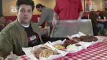 Adam travels across America and samples some of the best prepared and biggest meat creations across the country.