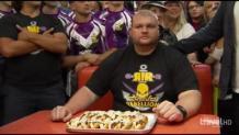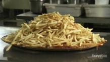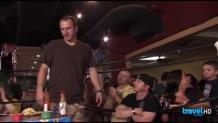 Adam is in St. Paul, MN sampling authentic Neapolitan pizza and a baked potato topped with every BBQ side. Finally, Adam coaches the youthful Jon Wolf to eat 2 spicy Juicy Lucy’s and 2-lbs. of fries in 45 minutes.