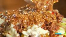 Adam visits Cincinnati, OH to taste some extraordinary grilled cheese sandwiches and the famous Cincinnati chili over pasta. Finally, he helps guide a baseball coach in a 5-lbs. reuben sandwich food challenge.
