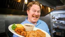 Casey starts with a 2 pound barbecue behemoth packed with every meat, sauce and side on the menu; gourmet doughnuts; a duel with the spiciest sauce in town in the six alarm fire challenge