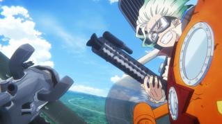 Ryusui and Senku take to the skies in a science versus science dogfight while Xeno's forces mount a ground counterattack.