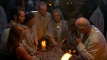 Roxton, Marguerite and Malone are mapping a series of caves, trying to find one that leads off the plateau without much luck. Marguerite, all the while, has been gathering gleaming gemstones in her backpack. At least she will not go back empty handed. A fog begins to fill the air around them...dense...deep fog. From out of the mist forms take shape: cloaked figures and eerie rock formations, encircling a stone slab. They find themselves surrounded by Druid-like figures who swarm over Marguerite. Roxton tries desperately to protect her, but she is torn from his grasp. The two men are restrained and Marguerite is carried away and deposited on the stone slab. It turns out that Marguerite figures in an ancient prophecy and that her fate has finally caught up with her, here. What it means, she must discover for herself, but it involves retrieving a sacred jemstone. She, along with Roxton and Malone, must go through several obstacles like headhunters and a leap of faith to accomplish Marguer