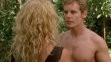 Roxton is looking for the materials for a crossbow to bag a T-Rex, but when one actually interupts him in his labors, he runs in the direction opposite his fellow travelers to keep them safe. He winds up falling into a hole that suddenly opens up. When the rest of the group search for him, they also fall into the hole, which turns out to be a whirlpool. It sucks them all under the water, and they emerge in a lake. They quickly find out that in this part of the plateau, the dominant species are lizard-like men, descendents of dinosaurs, and the humans are subservient to them. There is an ancient Roman structure to this civilization, including gladiator-type battles. While Marguerite and Veronica are forced to change into silky gowns for the entertainment of Tribune, the lizard-people's leader, Roxton is chosen to fight another human prisoner. The slaves and travelers rebel, and overthrow the lizard-men's intolerable rule, but not without loss ~ Roxton's opponent's sister ~ a rebel leade
