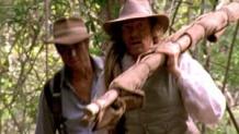 During a powerful thunderstorm on the plateau, all five of our heroes experience dreams and visions of their "lost" colleague, Summerlee, who had disappeared into a raging waterfall and presumed dead. Malone sets off after this ghost, and Challenger Marguerite and Roxton follow Ned. The three are ambushed by cannibals who fancy Marguerite's arm for an aperitif. Roxton and Challenger break free and save her, and then the three resume their hunt for Malone, only to be trapped by a hungry T-Rex.