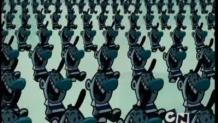 When Billy forgets to do his history homework, Grim gives him a universal remote control to alter time and space so he can go back in time and finish his report. Then, Billy and Mandy travel to the American Revolution, to prehistoric times, and even to the future, where they meet an aged Billy who is just finishing the report. After a struggle for the remote, Billy ends up again in the Prehistory and the remote breaks. Fast forward into the present, every person is dumb like he is and shares his characteristic big nose, including Mandy and Irwin.