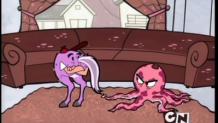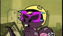 Trying to get revenge at Mandy for bossing them all the time, Billy and Grim put her in the "Mask of the Beast". Now, Mandy must be nice and friendly while wearing the mask, or else she'll become a hideous monster. Then, failing to remove the mask herself, and struggling to be kind to Billy and Grim, Mandy gradually turns into the beast. In the end, Billy and Grim ask Mandy to smile while she gives them a sponge bath, but this turns out to be too hard for Mandy, then she fully transforms into the beast and punishes them instead.