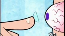 When Billy ruins his eyes by playing too much video games and looking directly into the Sun, Mandy and Grim suggest he see an ophthalmologist. However, when Billy refuses wearing glasses or having laser surgery, Grim uses his own scythe to zap his eyes. Now, although Billy has a clean eyesight, he can also see glimpses of the future, specially horrific accidents that occur to his friends. In consequence, Grim zaps Billy's eyes multiple times to restore them to normal. In the end, Billy ends up with weird-looking eyes.