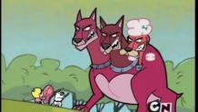 When Mindy mocks Mandy's dumb and coward dog, Saliva, Mandy decides to train her dog to be meaner. However, after Grim keeps mentioning his own dog, Cerberus, Mandy decides to use Grim's special whistle to call the gigantic, three-headed, fire-breathing hound. In the end, Cerberus marries Mindy's chihuahua, Little Delicious, and Saliva snaps against Mindy for a brief moment.