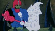 Orko runs away, thinking his friends don't really like him. The Sorceress solves his problem, but on his way back to the palace he is captured by Skeletor, who puts him under a spell to reveal the riddle of the jaw bridge. Skeletor uses this riddle to break into Grayskull, and The Sorceress must defend the castle while He-Man tries to free Orko.