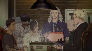 Caiman tries to convince Nikaido to return to the Hole with him, but her contract with En binds her. After the fight, En launches a search for her.