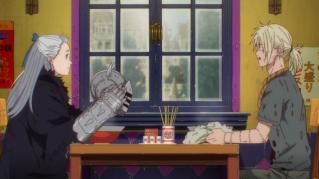 Caiman sneaks into the festival grounds in pursuit of Risu. Meanwhile, En tells Fujita the story of how Shin and Noi became partners.