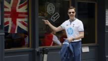 After being fired by Tottenham, Ted helps in the broadcast booth.
